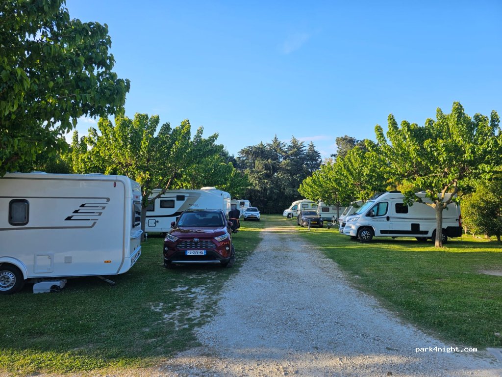 Emplacements spacieux et ombragés, sanitaires très propres, piscine, terrain de volley, table ping pong, jeux pour enfants. Services pour cc Patrons sympathiques et serviables. Producteur fruits et légumes à 500m. Nous y avons passé 4 jours très agréables en profitant du festival d'Avignon.