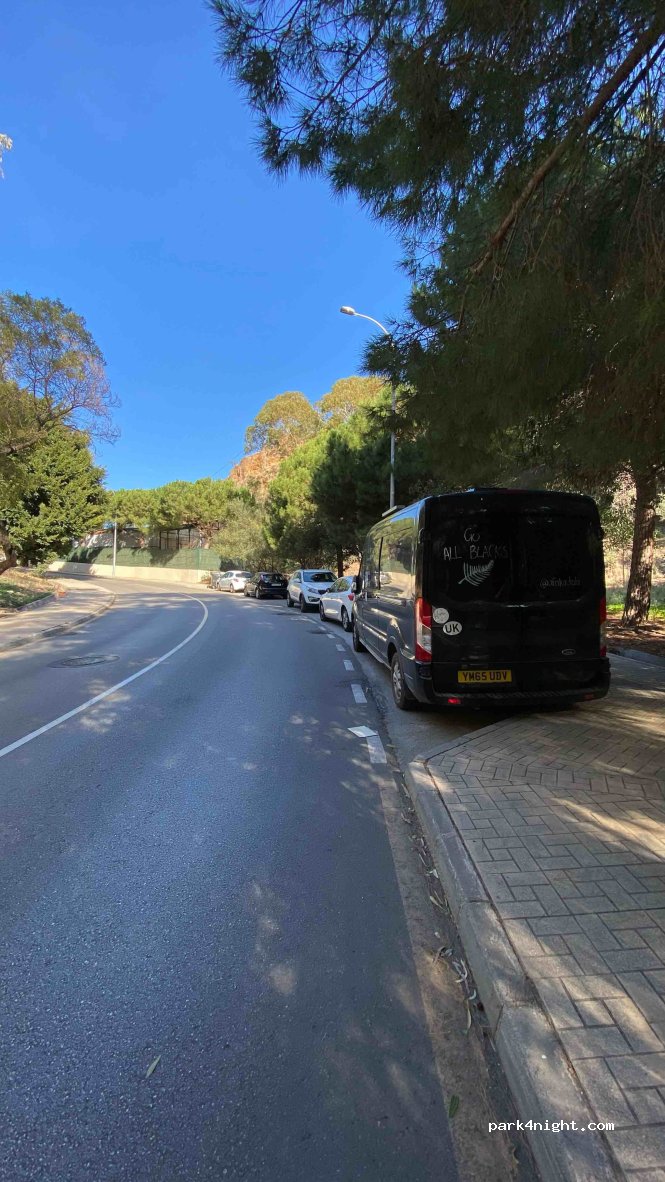 Free parking uphill Málaga, close to center by walk, calm during the night. Noisy in the morning, cars passing by. overall, safe