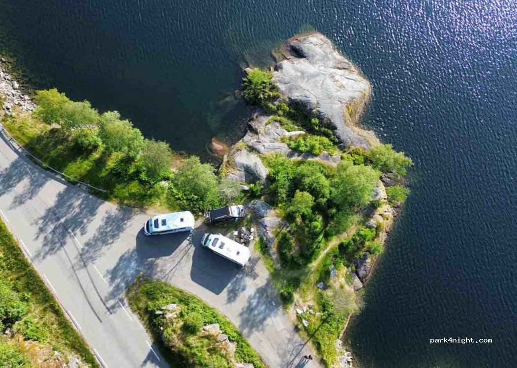 Super Platz, Rastplatz an der Straße, aber es fahren hier nur wenige Autos nachts. Mülleimer sind vorhanden und mehrere Badestellen. War aber gut was los hier, standen hier mit acht anderen in der Reihe, mehrere mussten umdrehen oder weiterfahren. Trotzdem ein wunderbares Plätzchen in Südnorwegen :)