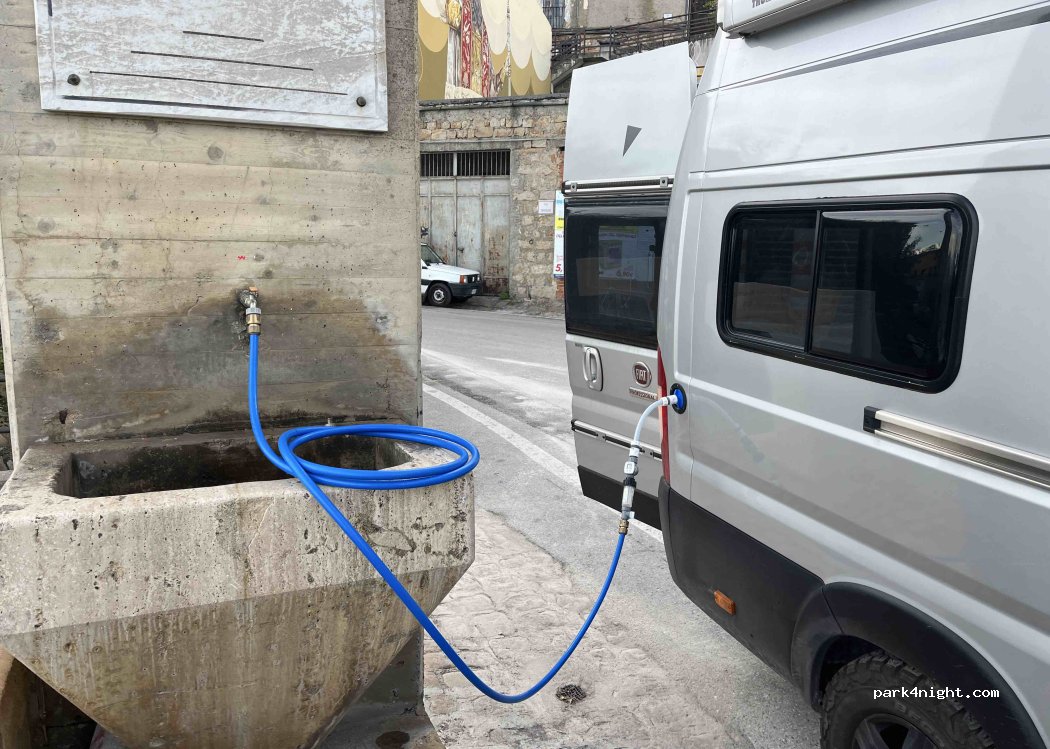 Pollina - Village fountain. According to locals, it's drinking water – neutral in taste. Parking is readily available. Slow water flow, requires some patience.