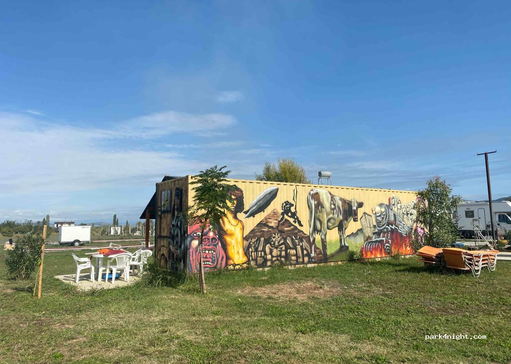 La struttura mette A VOSTRA DISPOSIZIONE docce, bagni, lavatrice, lavapiatti, cucina, frigorifero, sala comune, carico acqua potabile e scarico acque grigie e un bagno riservato per lo scarico della cassetta delle acque nere.