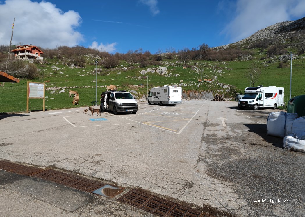 Public parking where overnight is allowed. Without services Good starting point for hiking and mountain routes in the Picos de Europa.