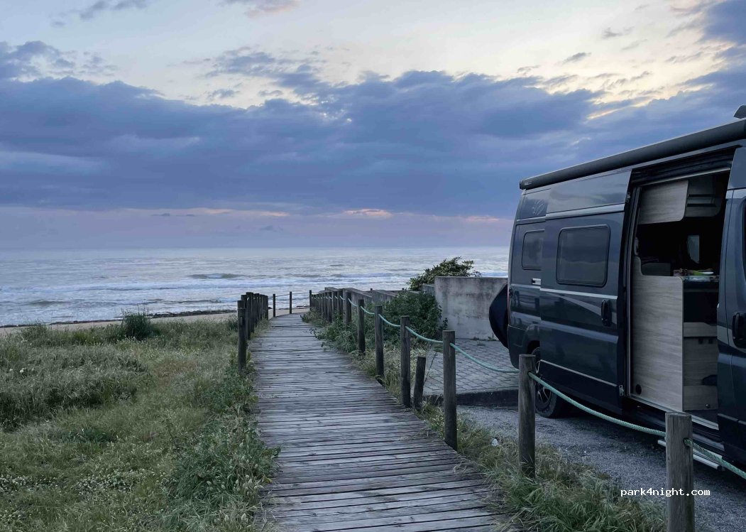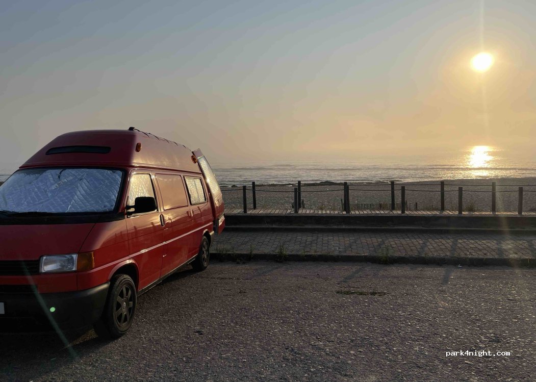 Parking at the end of a street, very quiet, right on the beach. Ideal location for taking the train to Porto. Stayed here for one night.