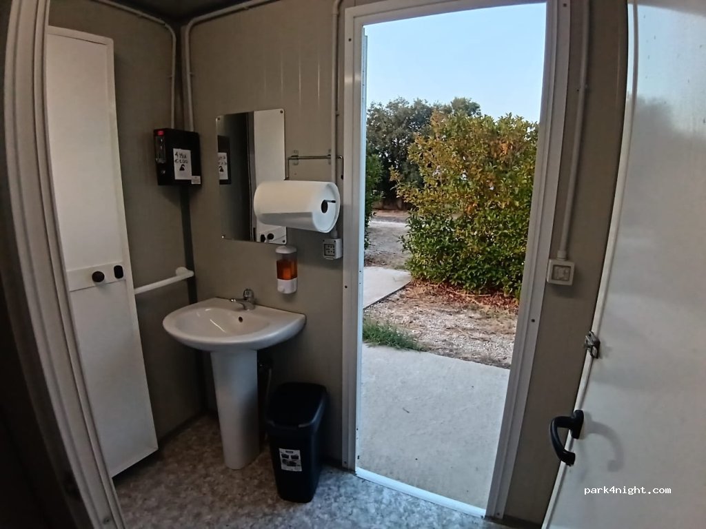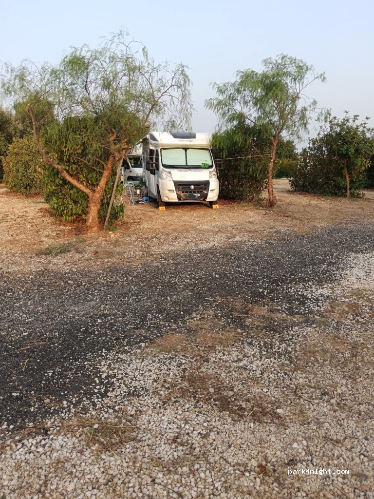 È un buon punto sosta con tutto quello che serve e molta cordialità. in questo periodo abbiamo pagato 25 euro 24h compresa l'elettricità, docce 1 euro 4 Min. Provenendo da Modica è visibile sulla destra un edificio dove ci sono dei grandi loghi che indicano radioattività, niente paura è solo una maldestra pubblicità di una società di protezione ambientale. Consigliatissimo